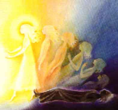 såkalte skytsengler som har denne oppgave å hjelpe døende over til