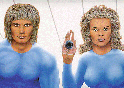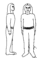 The Nibiruians. Drawing of people from 2 of the races present on the planet Nibiru.