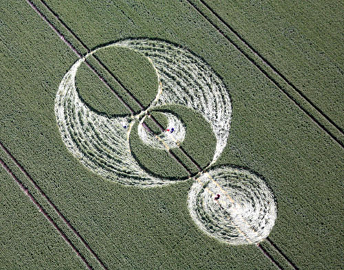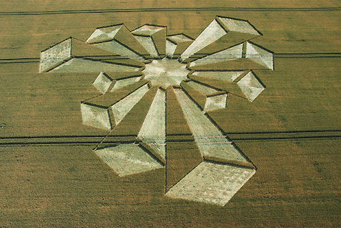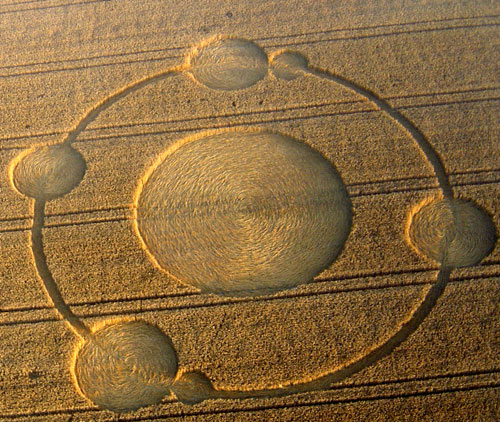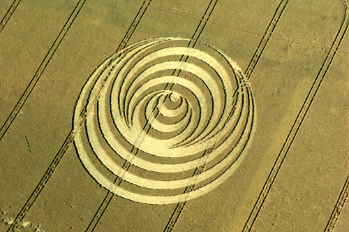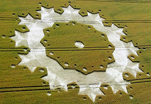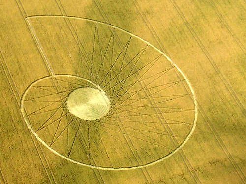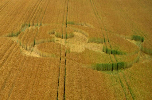 This pictures shows marks in cornfields generated by aliens using interdimensional technology.