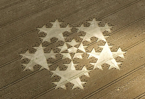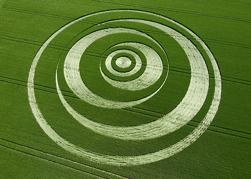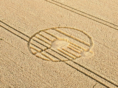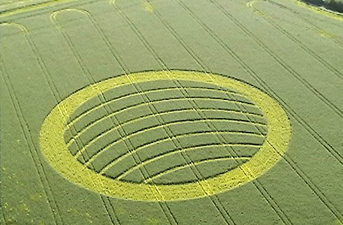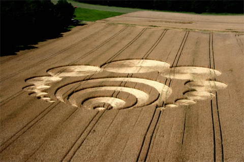 This pictures shows marks in cornfields generated by aliens using interdimensional technology.
