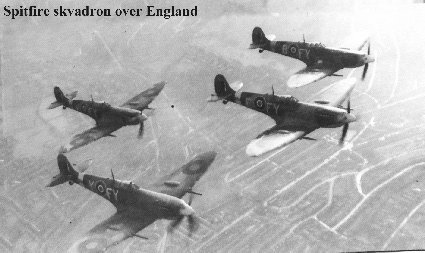 Jeg grøsset ved tanken. Plutselig ble stilheten brutt igjen av skvadronsjefens kalde og rolige stemme: "Gimlet fly - drop your babies!" Alle slapp sine dropptanker. Det var som å bli kvitt en ryggsekk full av bly. Og Spit’en min utnyttet kreftene bedre. Nå begynte vi for alvor å se etter tyske jagere. Den nærmeste tyske flyplassen herfra var Abbeville som lå rundt 70 kilometer nordøst for oss. På Abbeville var det bl.a. utstyrt Focke Wulf190 og Messerschmitt109 jagere. Plutselig hørtes en ny sprakende stemme i radioen: "Wildcat til Gimlet leder, 10 tyskersvint 40 km. øst for Reims. Kurs, sydvest - høyde, 2. 300 fot. Over.... Peter svarer straks: " Gimlet til Wildcat - 10 øst for Reims, 2300 fot - lytter...."